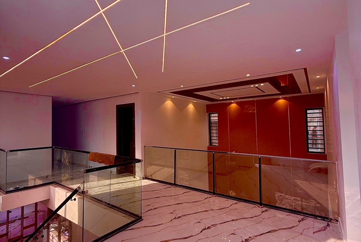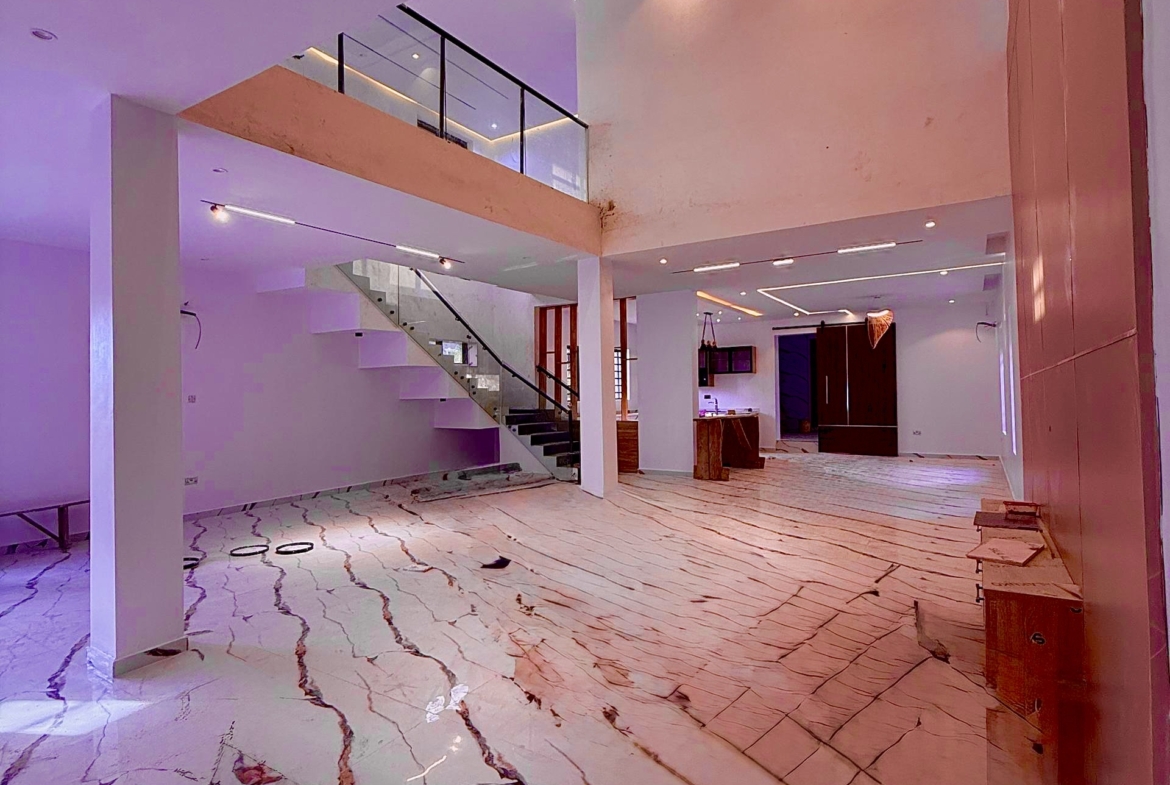 This 5 bedroom duplex is a master piece of art, well finished and furnished with a BQ, all 5 spacious rooms ensuite, large living room, padded cinemas room, wet and dry fitted kitchen, reading room , penthouse. Within Engr Lere Adigun Estate.